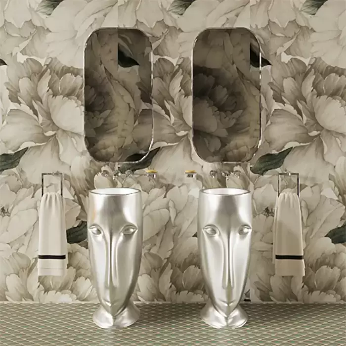 Kerasan Artwork Раковина 45x51x94.5 см, без отв., свободностоящая "MOLOCO", слив в стену, цвет: белый/серебро