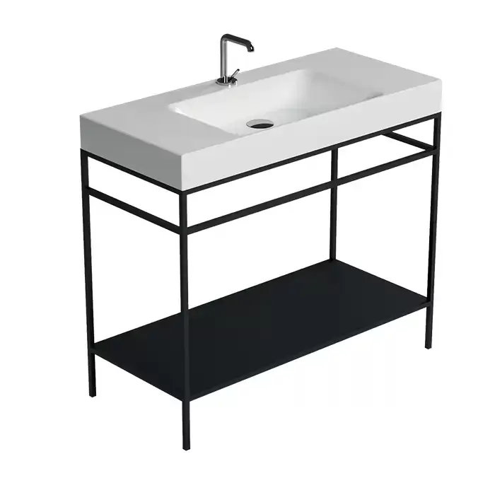 Kerasan Cento Стальная структура 100х45см, с раковиной на 1 отв,, напольная, с металлической полкой, цвет: черный матовый