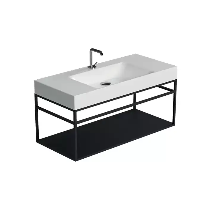 Kerasan Cento Стальная структура 100х45см, с раковиной на 1 отв,, подвесная, с металлической полкой, цвет: черный матовый
