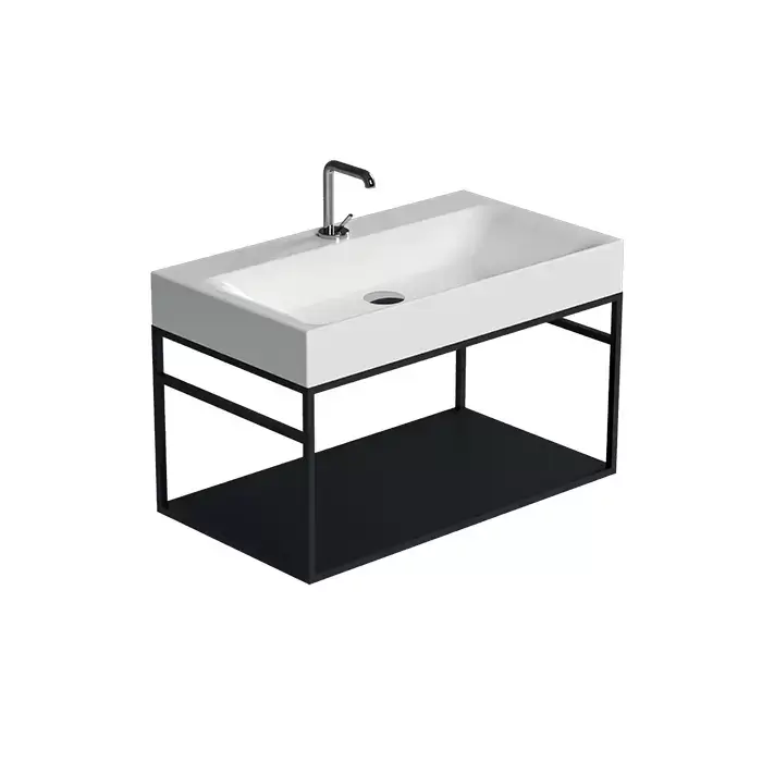 Kerasan Cento Стальная структура 80х45см, с раковиной на 1 отв,, подвесная, с металлической полкой, цвет: черный матовый