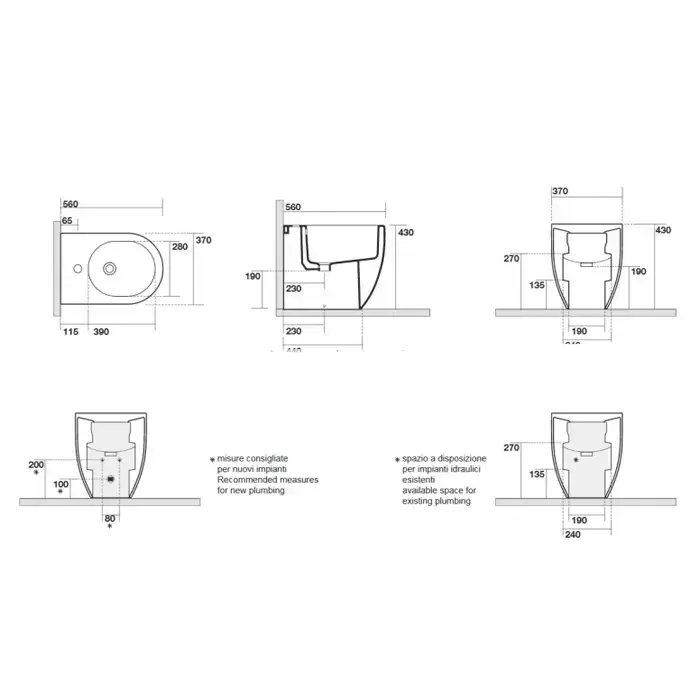Kerasan Flo биде напольное приставное 56х37см, с 1 отв. под смеситель, с крепежом Wb5N в комплекте, цвет: белый