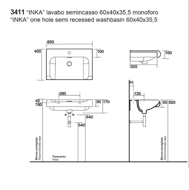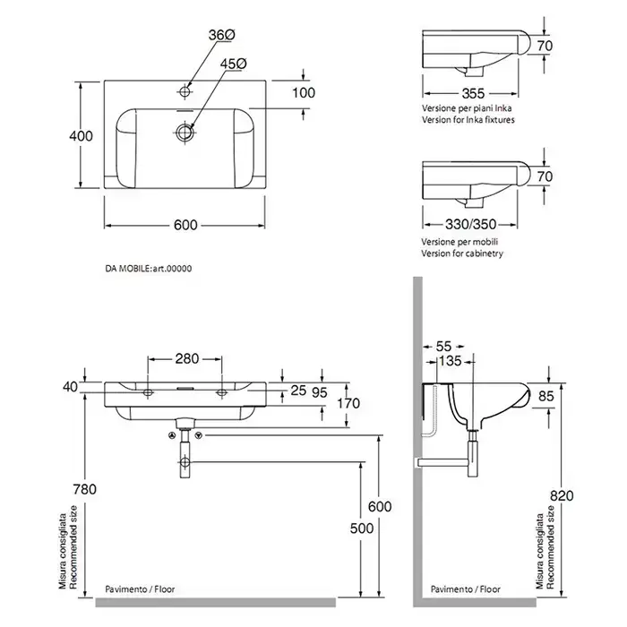 Kerasan Inka Project База INKA подвесная 120см, для установки раковины 60х40 см, по центру, раковина, цвет: белый глянцевый/черный матовый
