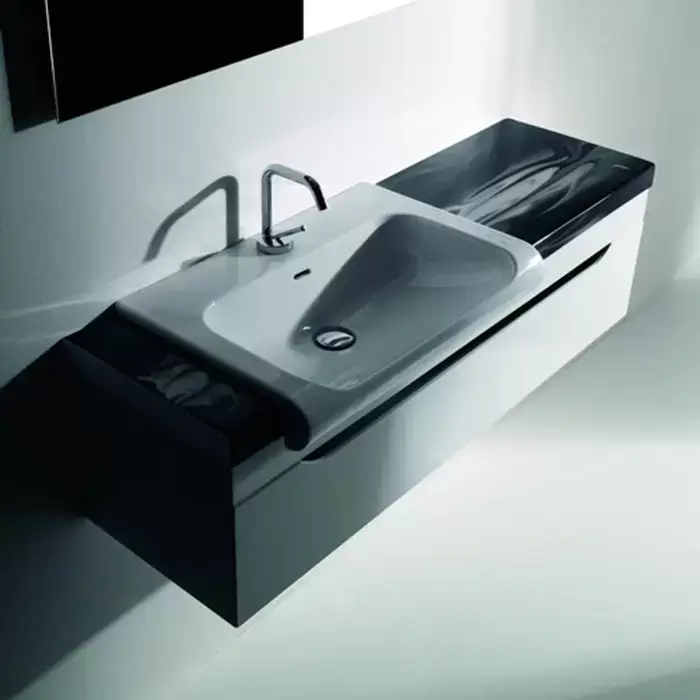 Kerasan Inka Project База INKA подвесная 120см, для установки раковины 60х40 см, слева, раковина, панель исполнение Arte 2, цвет: белый глянцевый