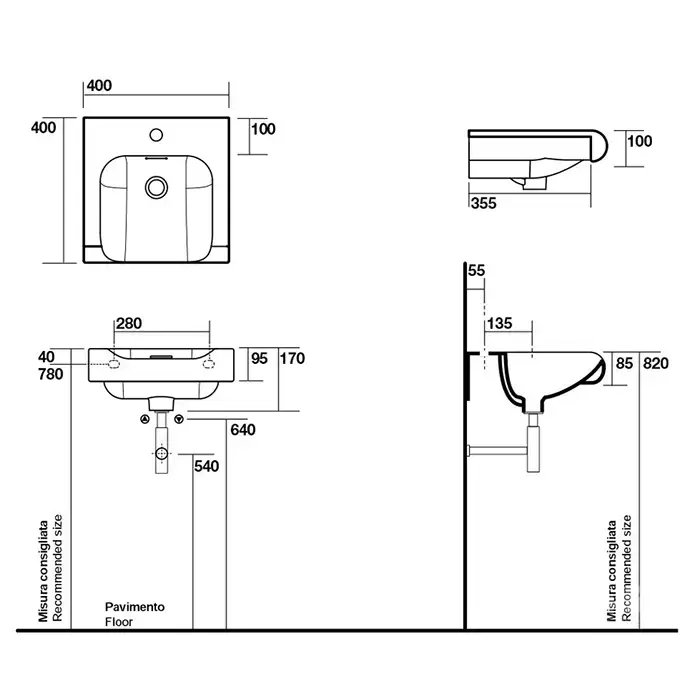 Kerasan Inka Project База INKA подвесная, с раковиной, 40см, Цвет: белый глянцевый