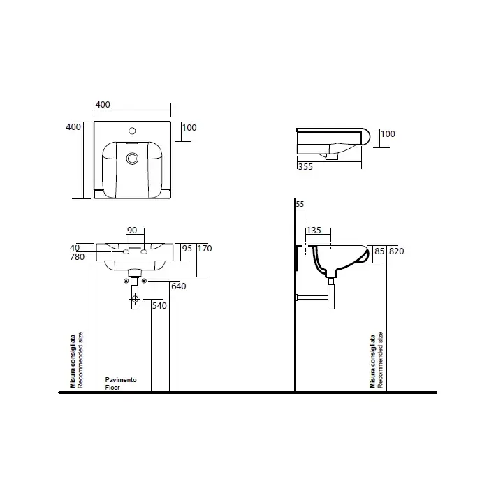 Kerasan Inka Project Тумба с раковина INKA 40x40x35,5 без отверстия под смеситель, подвесная, цвет: белый с панелями