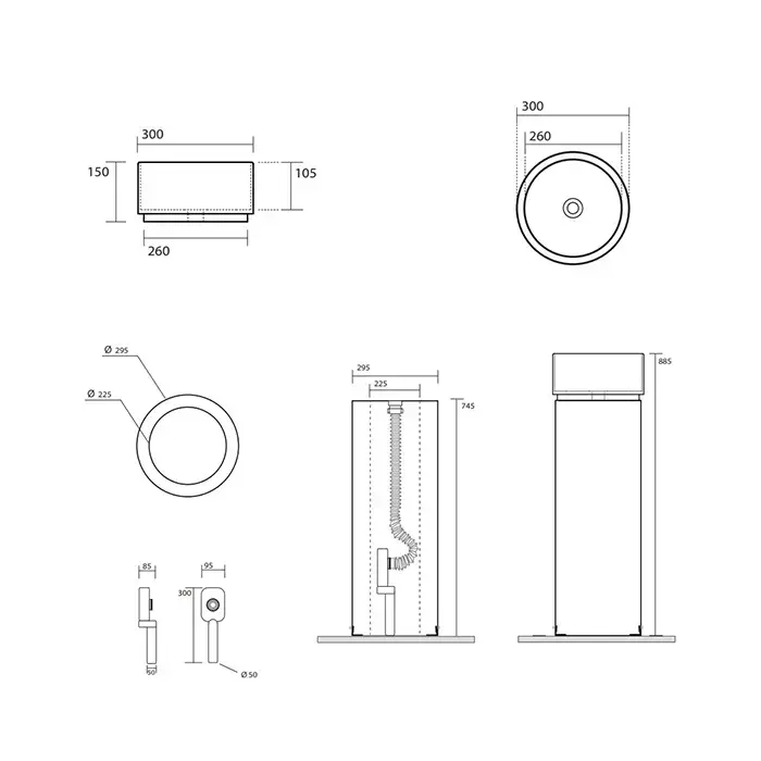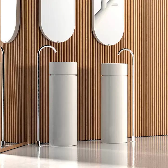 Kerasan Oke Раковина круглая 30см, на пьедестале, без отв., цвет: белый глянцевый