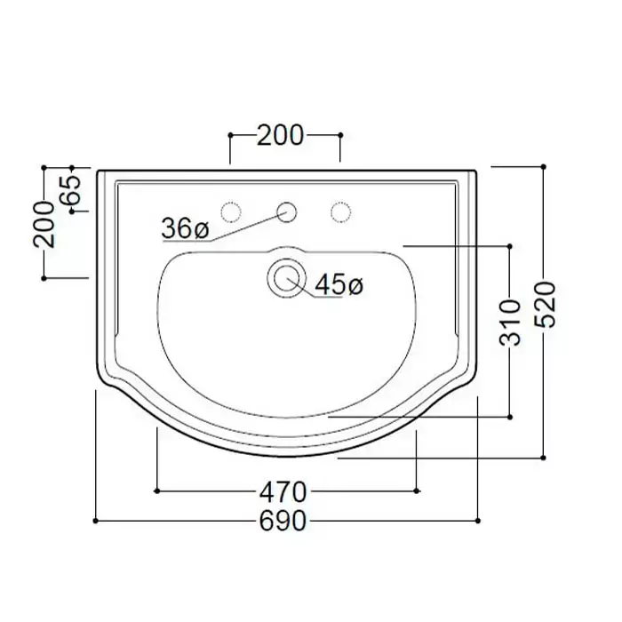 Kerasan Retro 69 Раковина 69х52 см, 3 отв., цвет: белый