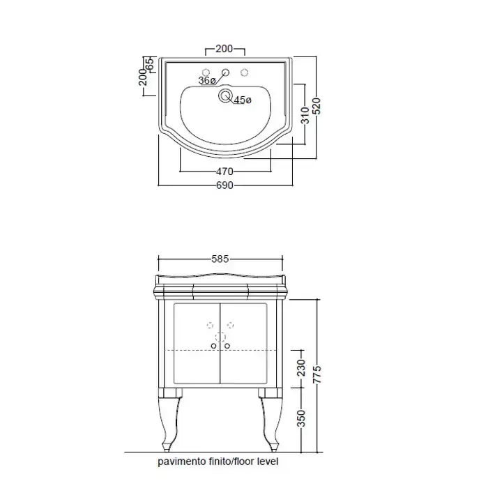 Kerasan Retro Комплект мебели 69см., подвесной, с ручкой кристалом (кольцо: хром), цвет: черный
