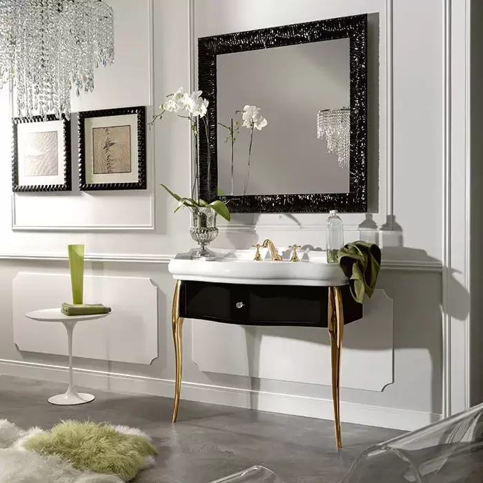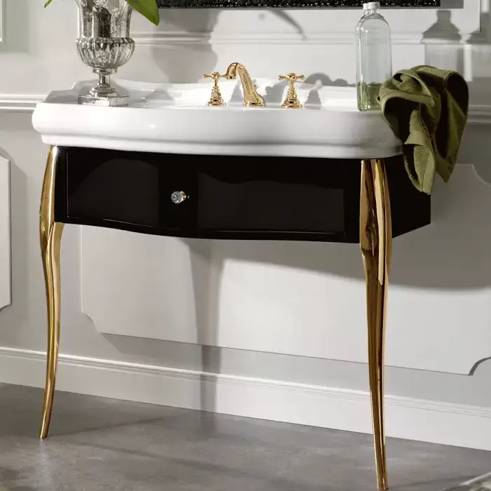 Kerasan Retro Комплект мебели, ножки: золото, ручки: кристалл/кольцо-золото, 100см, подвесной, Цвет: черный глянец,