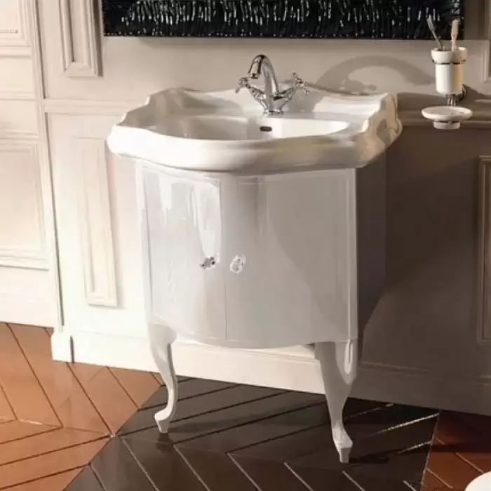 Kerasan Retro Комплект мебели, с ручкой кристалом (кольцо: золото), 69см, подвесной, цвет: белый