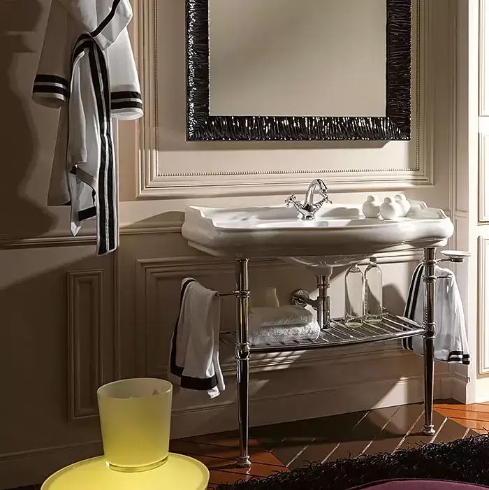 Kerasan Retro Консоль 100х54.5см, с белой раковиной на 1 отв,, с полкой-решеткой, напольная, цвет: cromo