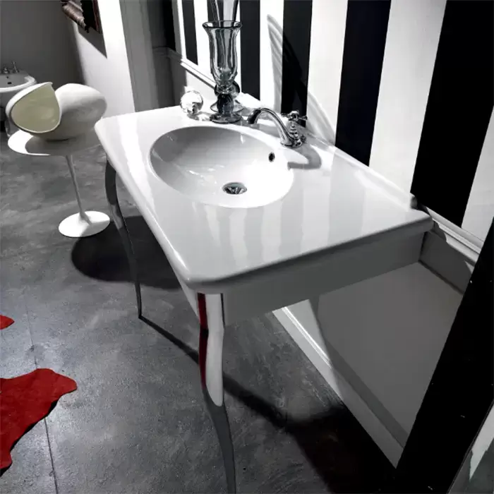 Kerasan Retro Консоль-раковина белая 100х55см, напольная, на 1 отв, с ножками cromo.