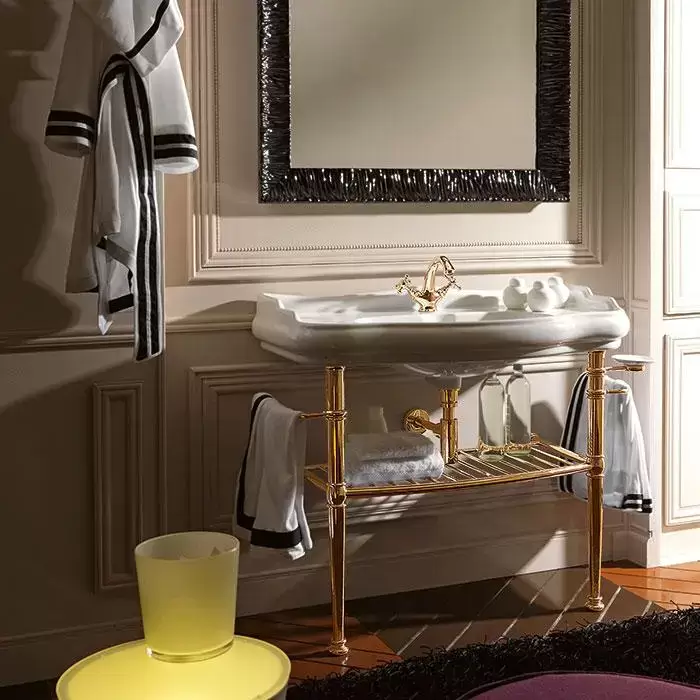 Kerasan Retro Консоль с белой раковиной 100х46см, на 1 отв, с полкой-решеткой, напольная, цвет: oro