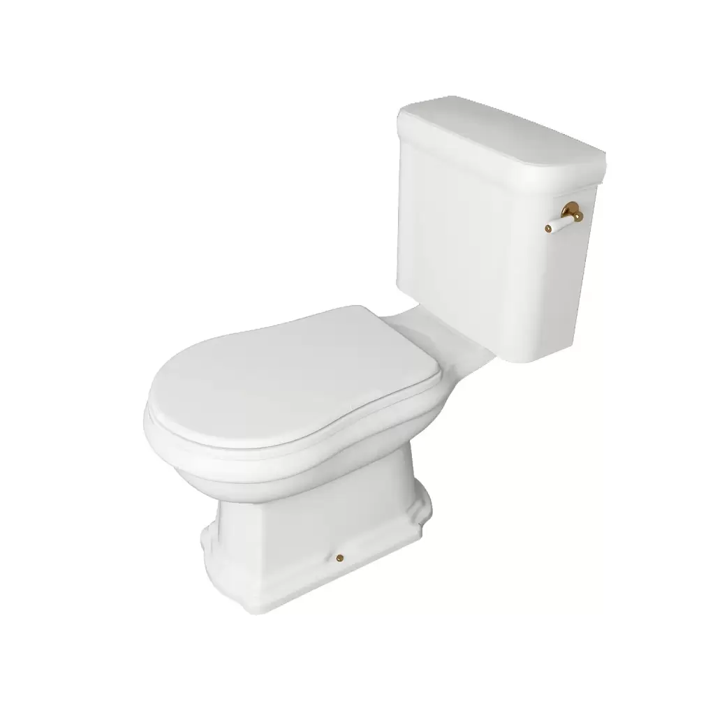 Kerasan Retro Унитаз 72х38.5см., моноблок, слив в стену, ручка смыва справа, цвет: белый/золото