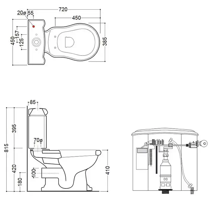 Kerasan Retro Унитаз 72х38.5см., моноблок, слив в стену, ручка справа, цвет: белый/бронза