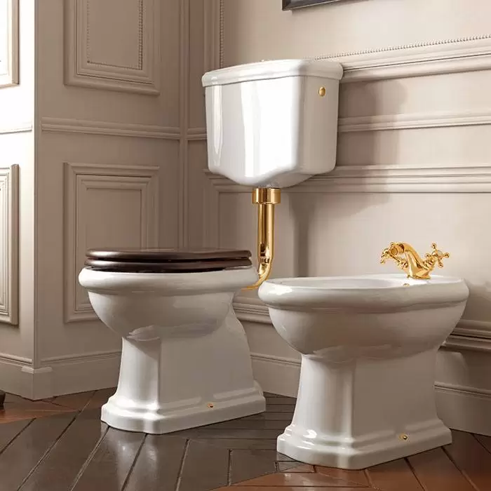 Kerasan Retro Унитаз 72х38.5см., приставной, с низким бачком, слив в стену, цвет: белый/золото