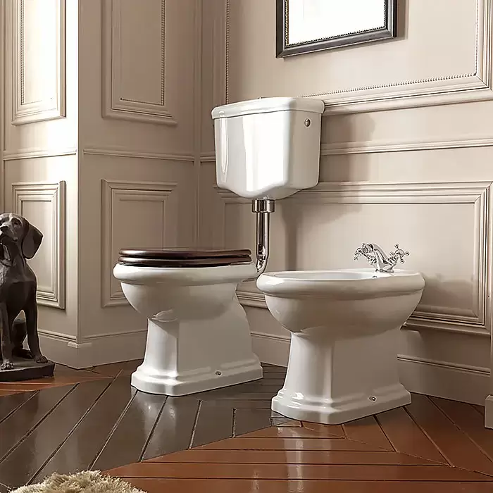 Kerasan Retro Унитаз 72х38.5см., приставной, с низким бачком, слив в пол, цвет: белый/хром