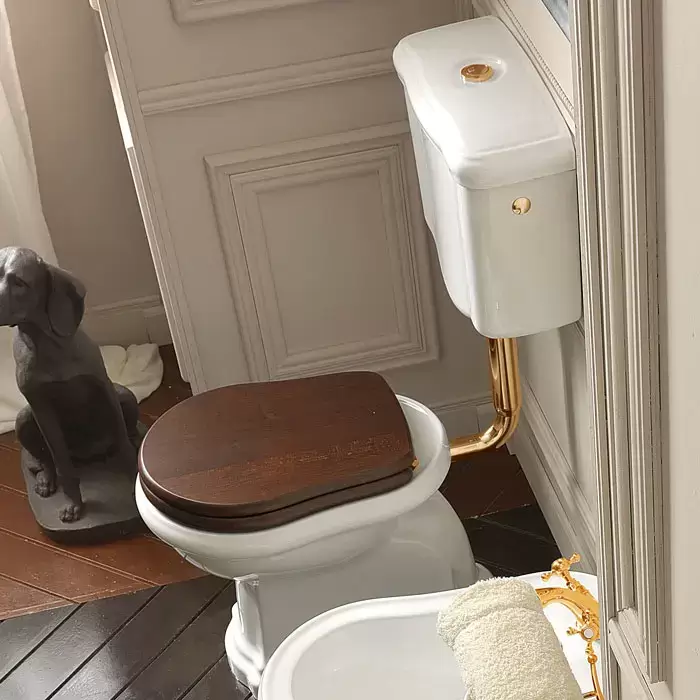 Kerasan Retro Унитаз 72х38.5см., приставной, с низким бачком, слив в пол, цвет: белый/золото