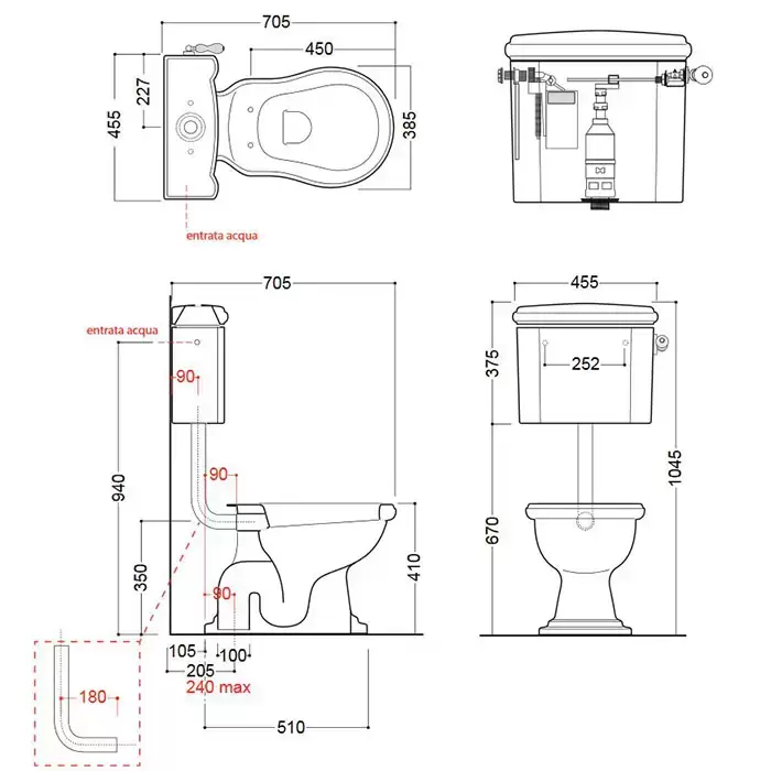 Kerasan Retro Унитаз 72х38.5см., приставной, с низким бачком, слив в пол, цвет: черный глянцевый/хром