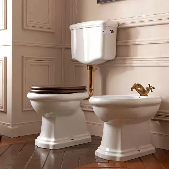 Kerasan Retro Унитаз 72х38.5см., приставной, с низким бачком, слив в пол, цвет: белый/бронза