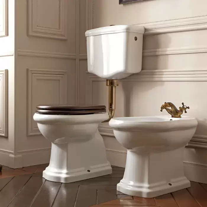 Kerasan Retro Унитаз 72х38.5см., приставной, с низким бачком, слив в стену, цвет: белый/бронза