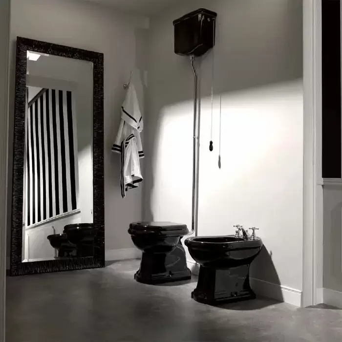 Kerasan Retro Унитаз 72х38.5см., с высоким бачком, слив в стену, цвет: черный глянцевый/хром