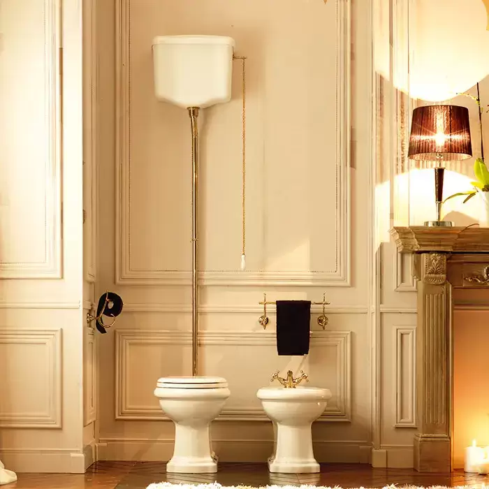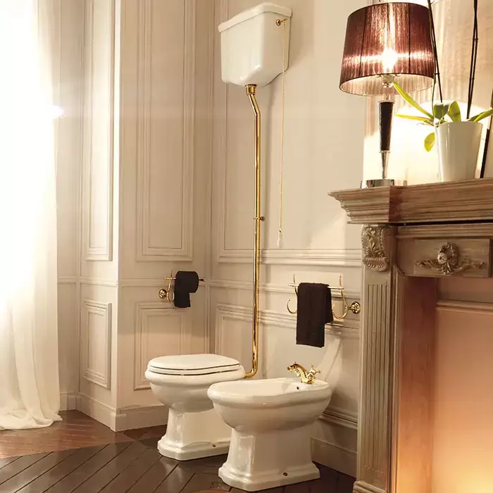 Kerasan Retro Унитаз 72х38.5см., с высоким бачком, слив в стену, цвет: белый/золото