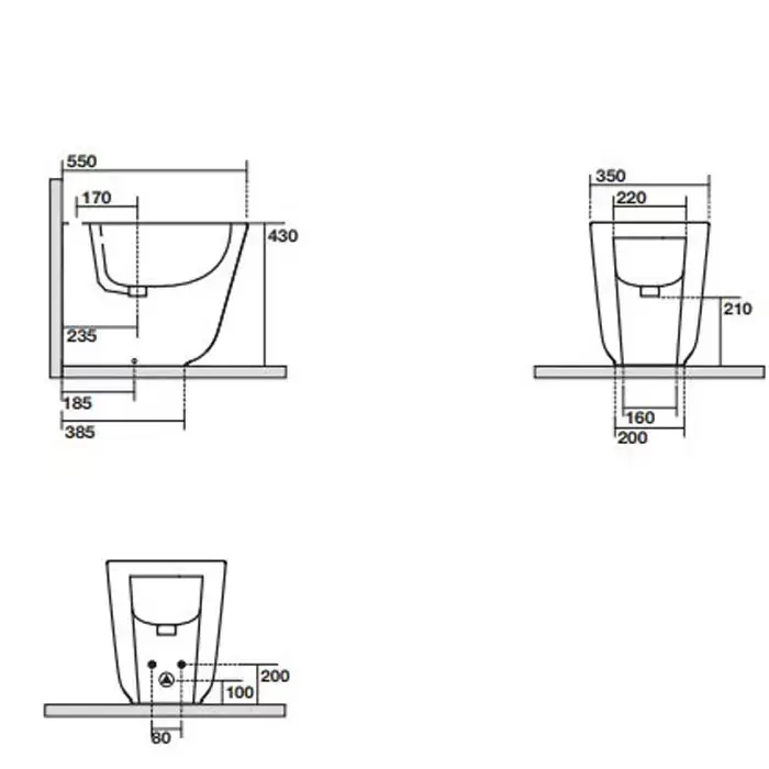 Kerasan Tribeca Биде напольное пристенное 54х35см, с 1 отв под смеситель, c креплением WB5N, цвет: белый матовый