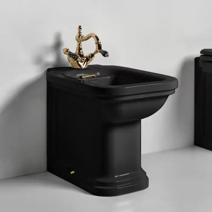 Kerasan Waldorf Биде напольное пристенное 55х37см с 1 отв. под смеситель, с заглушкой, цвет: черный/золото