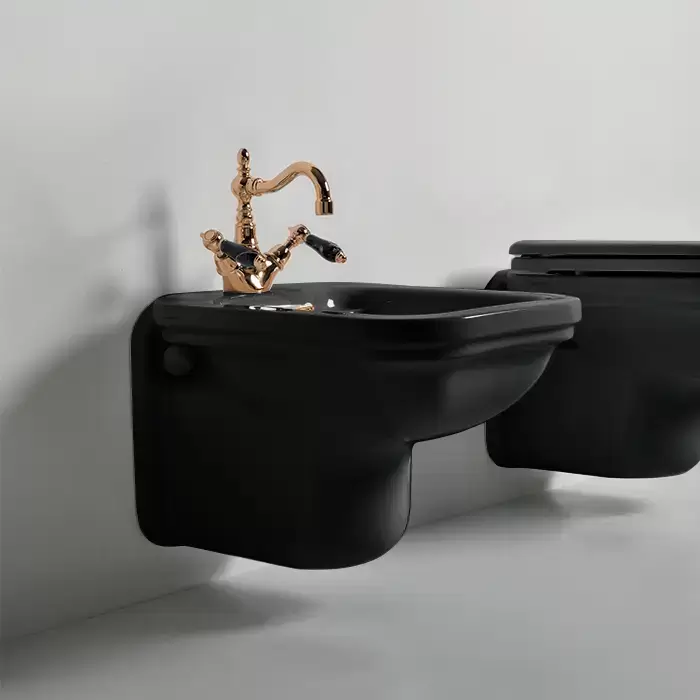 Kerasan Waldorf Биде подвесное с 1 отв. под смеситель 55х37см, цвет: черный/золото
