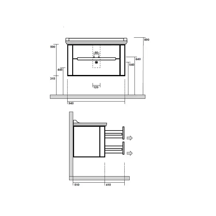Kerasan Waldorf Комплект подвесной мебели 100см, с 2-мя ящиками, цвет: черный матовый