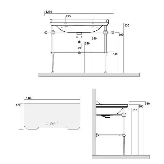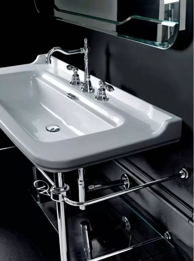 Kerasan Waldorf Металлическая структура 120х42см, с раковиной на 3 отв., со стеклянной полочкой, напольная, цвет: хром с раковиной