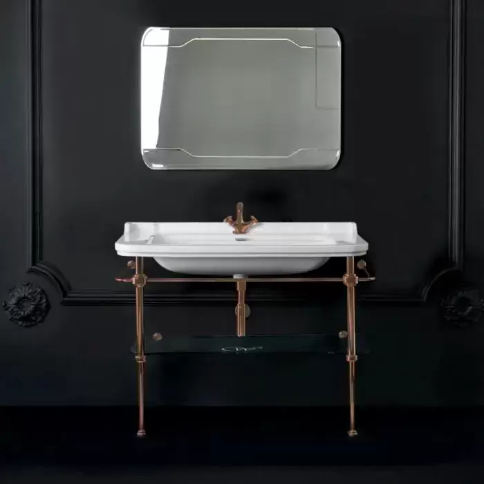 Kerasan Waldorf Металлическая структура 120х42см, с раковиной на1 отв., со стеклянной полочкой, напольная, цвет: бронза