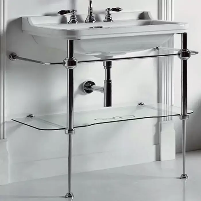 Kerasan Waldorf Металлическая структура 80х42см, с раковиной на 3 отв, со стеклянной полочкой, напольная, цвет: хром