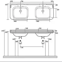 Kerasan Waldorf Раковина 150х55 см, с 2 отв., двойная, керамическая, цвет: черный/золото