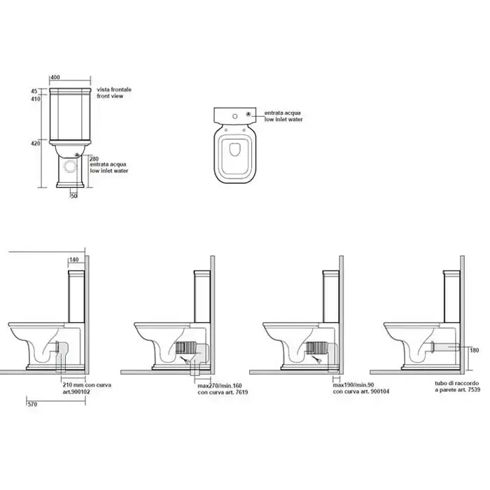 Kerasan Waldorf Унитаз-моноблок 68х36,7см, фурнитура хром
