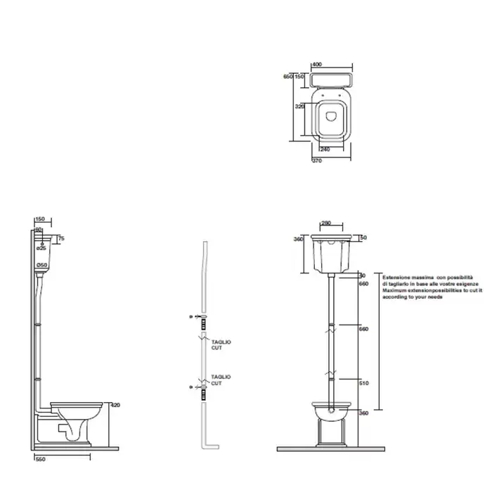 Kerasan Waldorf Унитаз пристенный удлиненный, с высоким бачком- уст-ка на расстоянии 2см от стены и трубой, цвет: белый/хром