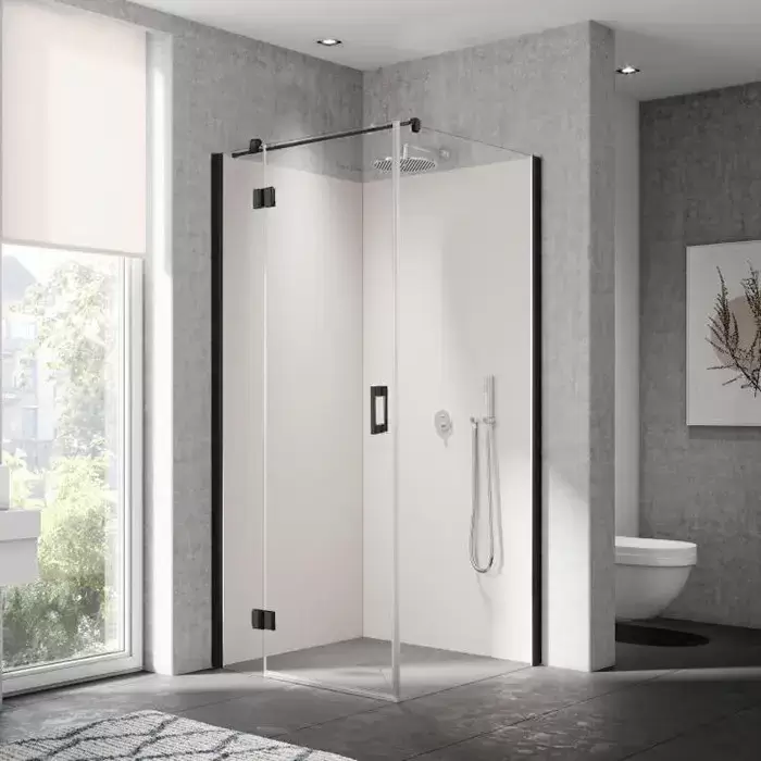 KERMI Liga Душевой угол SNL+TWP на поддон 100x100х200см., цвет: черный матовый/прозрачное стекло с Kermiclean