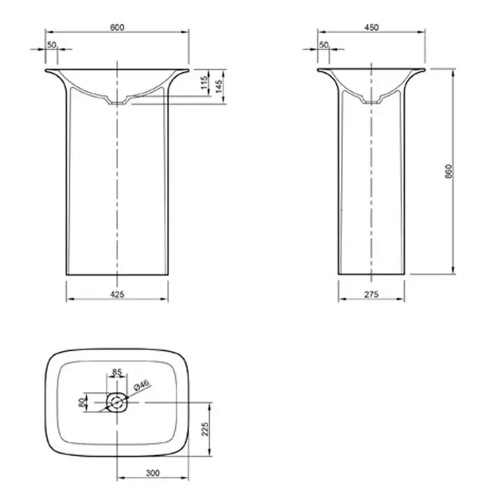 KNIEF Glam Раковина 60х45х86 см, без отв., отдельностоящая, выпуск в пол, цвет: белый матовый