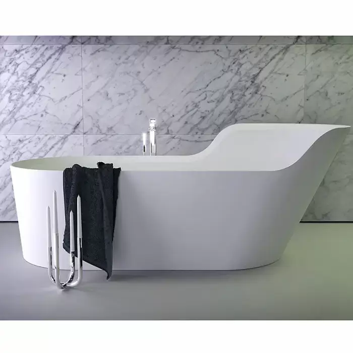 KNIEF Glow Ванна отдельностоящая ассимметричная правая 182х82х70/50см со сливом, цвет: белый матовый