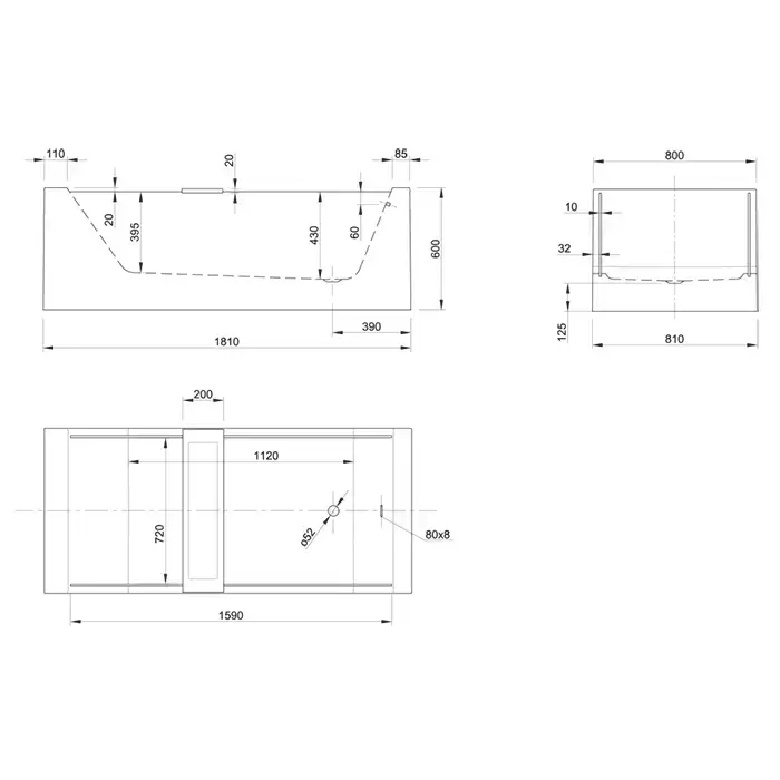 KNIEF Look Ванна отдельностоящая 180х80х60 см, с прозрачными боковыми стенками, со сливом-переливом - белый, цвет ванны: белый