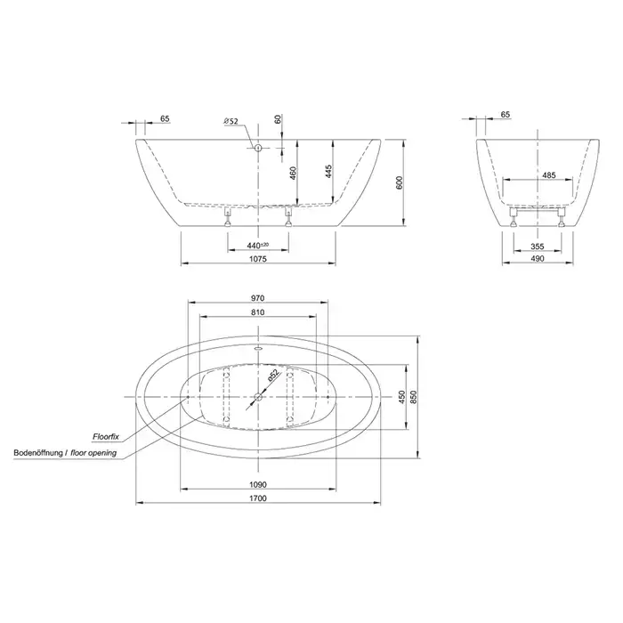 KNIEF Loom XS Ванна отдельностоящая 170x85x60см без слива-перелива, c комплектом крепления к полу, цвет: белый