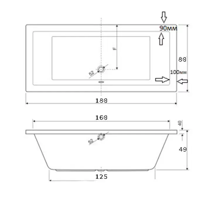 Knief Plane Fit Ванна встроенная встраиваемая, 180x80см с ножками, цвет: белый