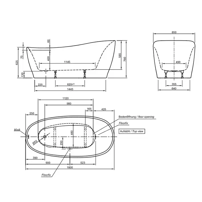 Knief Relax Ванна отдельностоящая 180х85х60см, с щелевым переливом, цвет: белый