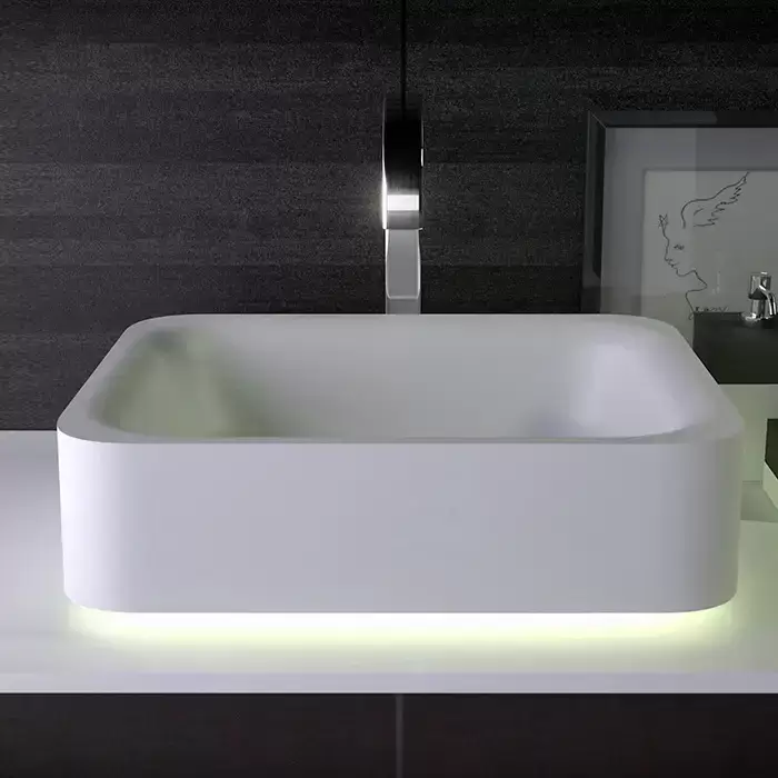 KNIEF Shine Раковина 50х40х15 см, без отв., накладная, без перелива, с LED подсветкой, цвет: белый матовый