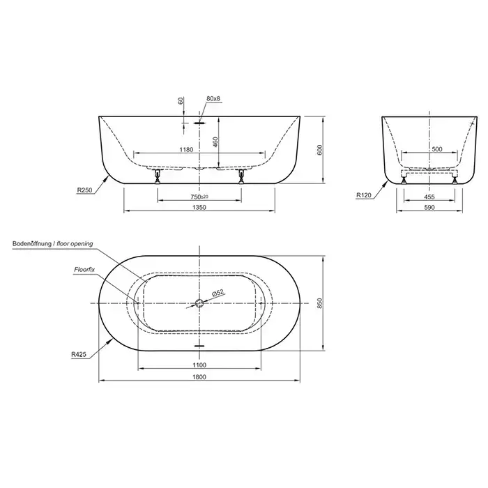 Knief Venice Ванна отдельностоящая 180x85x60см., щелевой перелив, цвет: белый