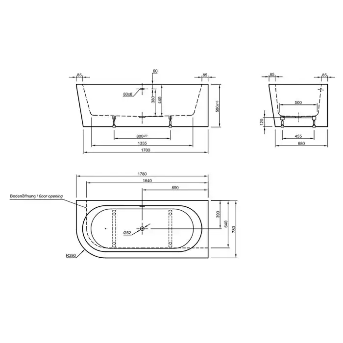 Knief Wall Corner Left Ванна акриловая в правый угол 180x80x60см, щелевой перелив SLOT, цвет: белый