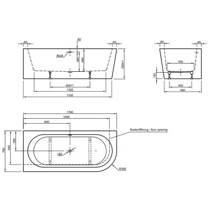 Knief Wall Corner R Ванна акриловая угловая в левый угол 180х80х60см, щелевой перелив, цвет: белый