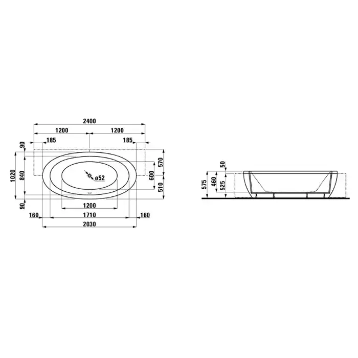 Laufen Alessi One Ванна 203x102x46см, полувстраиваемая, без гидромасс., без слив-перелива, с каркасом, панелью, материал: акрил, цвет: белый