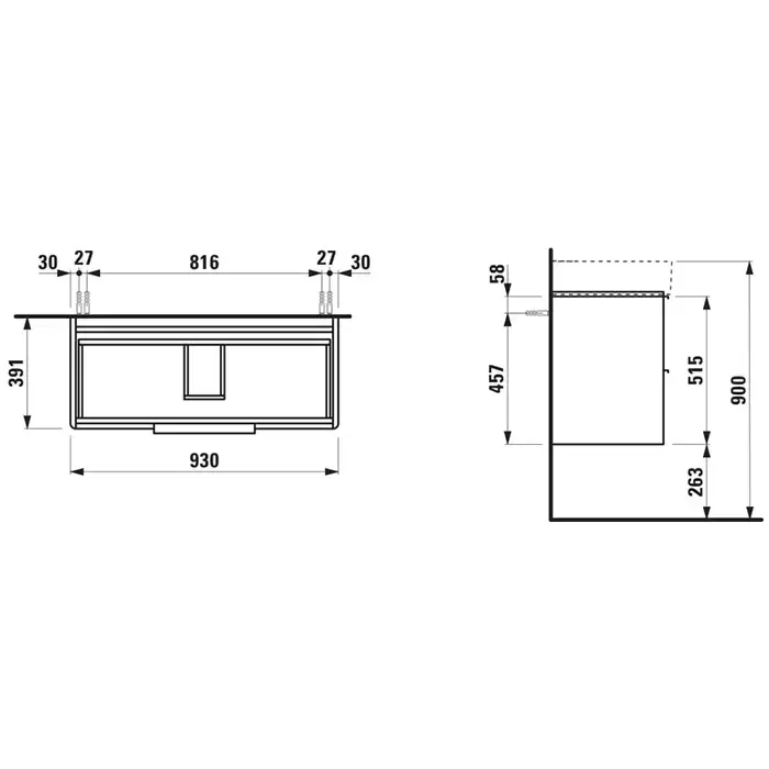 Laufen Base База c раковиной 93х39х53см., подвесная, c 2 ящиками, подвесная, цвет: белый
